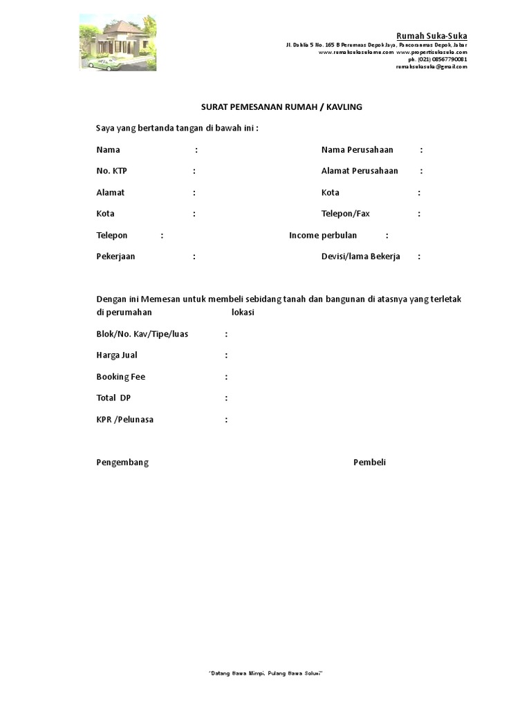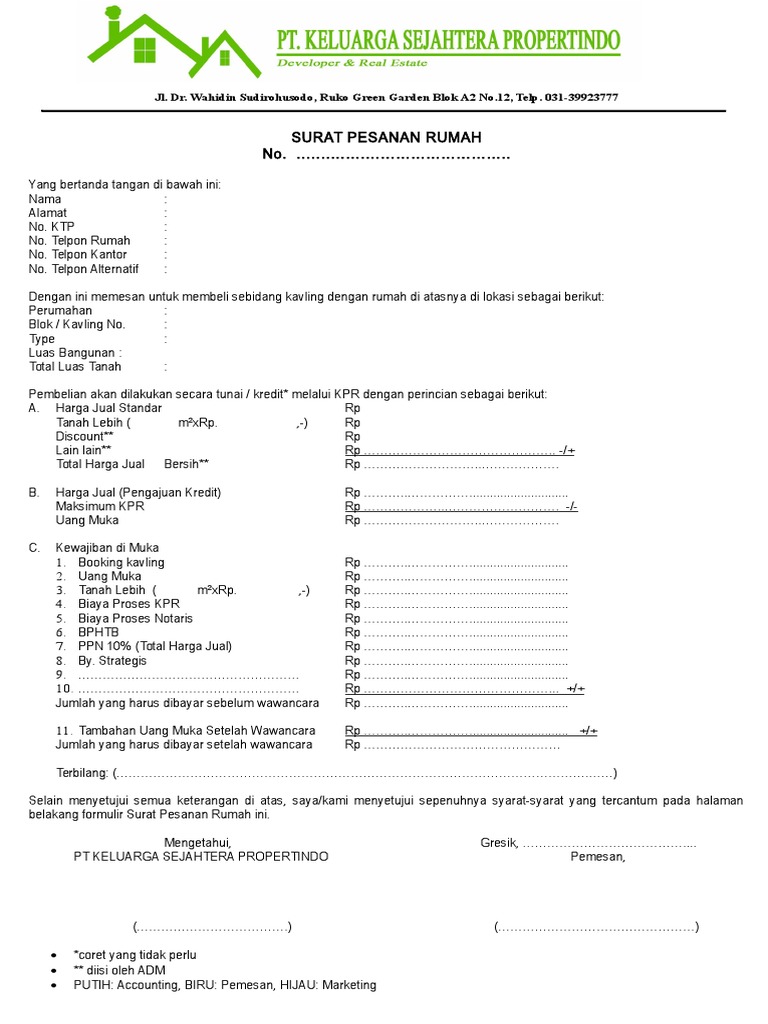 Jadi penting untuk selalu diingat bahwa Surat Pemesanan Rumah bukan hanya dokumen standar tetapi juga memastikan hak Anda dilindungi. Tempat Tanggal Lahir.
